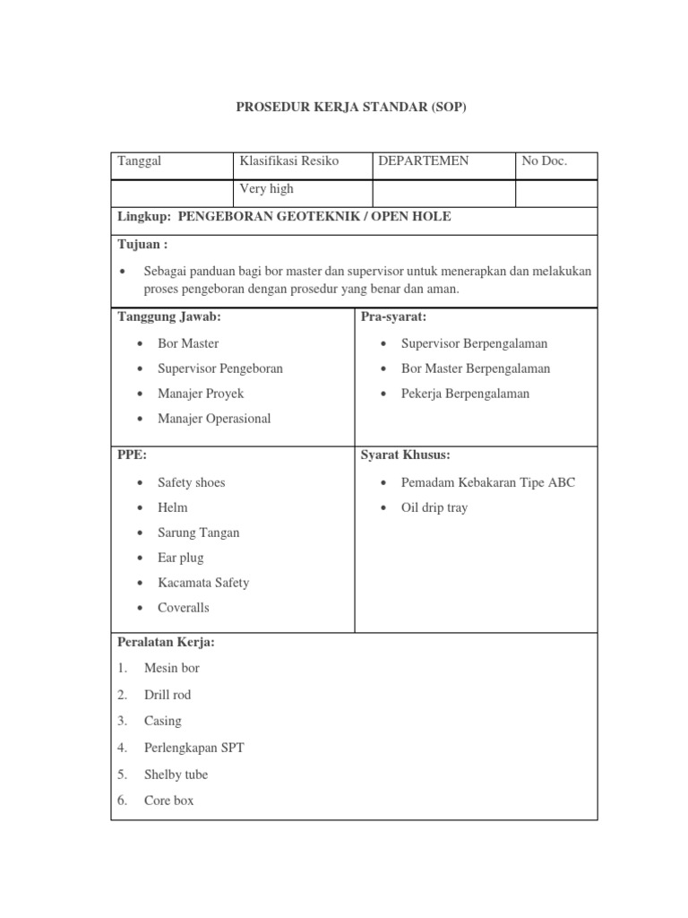 Prosedur Kerja Standar Sop Sumber : www.scribd.com